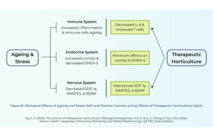 Ng, K. S. (2020). The Science of Therapeutic Horticulture: A Biological Perspective. In E. H. Kua, V. Chong, A. Sia, J. Kua (Eds.), Nature. Health. Happiness: Enhancing Well-being and Mental Resilience (pp. 123-135). Write Editions.